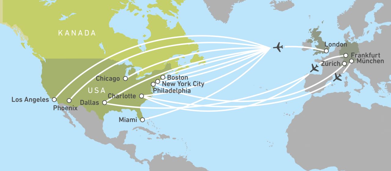Die weltgrößte Fluggesellschaft American Airlines bietet täglich Flüge von Deutschland und der Schweiz in die USA an und betreibt die jüngste Flugzeugflotte aller US-Carrier. American Airlines ist Mitglied der oneworld® Allianz und ist Partner im Atlantic Joint Business (AJB).