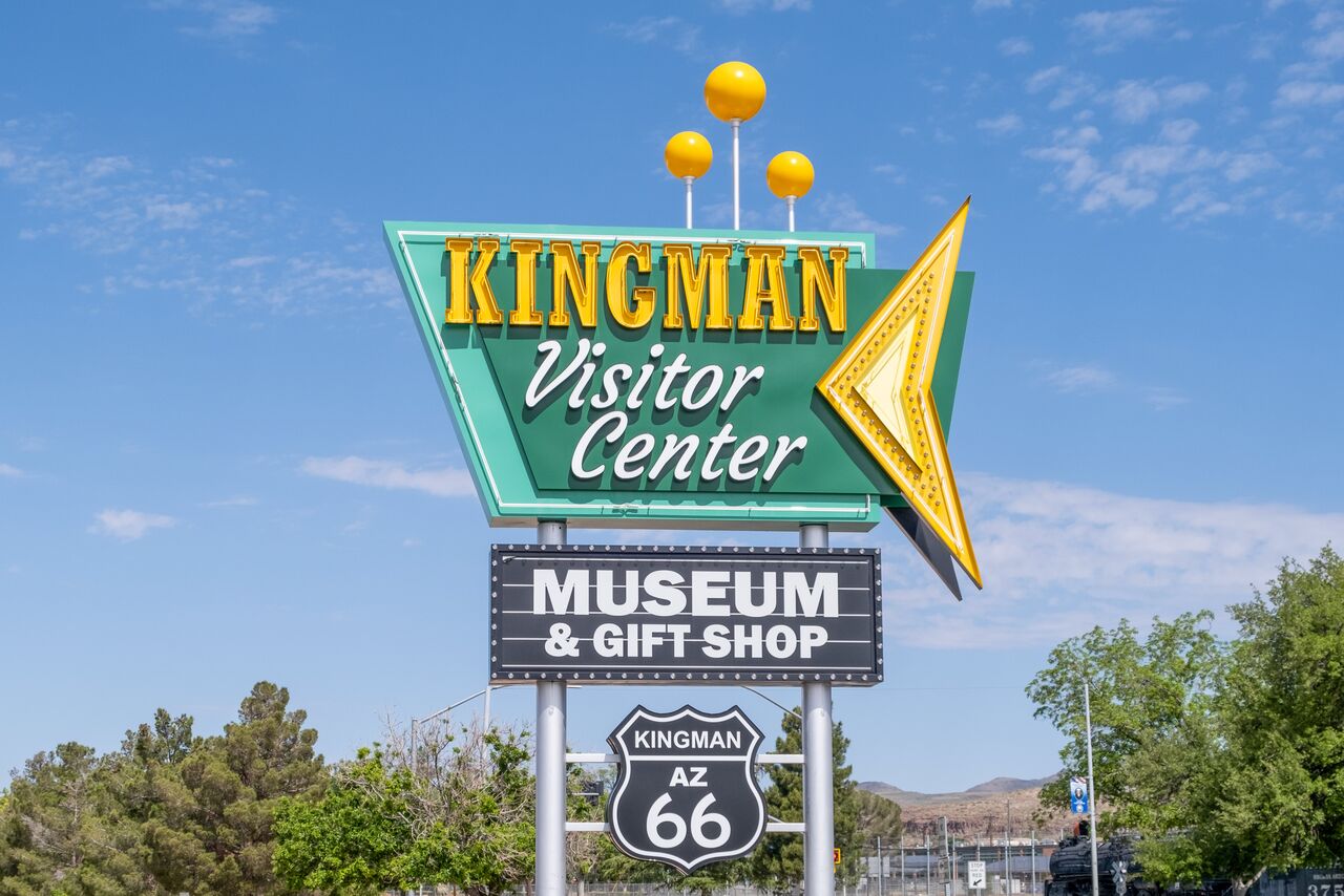 Heute reisen Sie von Williams bis nach Kingman, dem selbst ernannten „Heart of Historic Route 66“. Die Strecke gehört zu den längsten durchgehenden Originalabschnitten der alten Route und belohnt Sie mit einem herrlichen Wüstenpanorama. Ein Muss ist der Halt in Seligman, das als Geburtsort der historischen Route 66 gilt: Im legendären Snow Cap Drive-In werden bis heute amerikanische Klassiker serviert – garniert mit jeder Menge Nostalgie. In Kingman selbst tauchen Sie im umgebauten alten Kraftwerk, dem heutigen Arizona Route 66 Museum, in die Geschichte rund um die Roadtrip-Ära ein. Gleich davor wartet ein originelles Fotomotiv und unverzichtbares Andenken: das riesige Drive-Thru Route 66 Shield, unter dem Sie mit dem Auto posieren können.