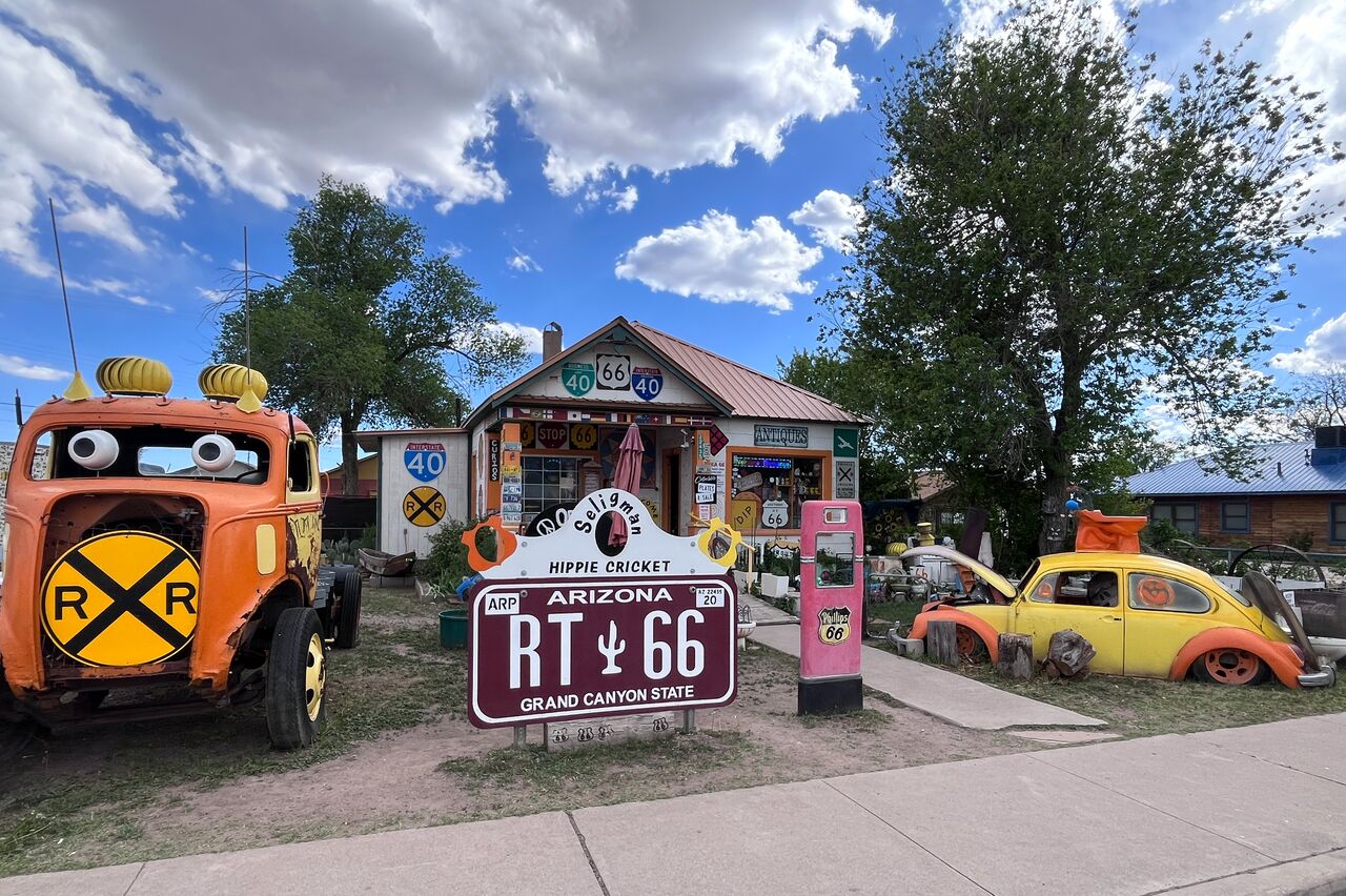 Heute führt Ihre Route nordostwärts durch das Herz Arizonas, vorbei an Kakteenlandschaften und weiten Ebenen. In Holbrook erreichen Sie ein echtes Relikt der alten „Mother Road“, das mit seinen flackernden Neonlichtern, urigen Diners und Tipi-Motels vom goldenen Zeitalter des US-Highways erzählt. Neben nostalgischem Flair begeistert Holbrook vor allem Geologie-Fans: Bestaunen Sie im Jim Gray’s Petrified Wood Co. versteinertes Holz, Kristalle und Fossilien aus der Umgebung – lebensgroße Dinosaurier inklusive! Am nächsten Tag wartet mit dem nahegelegenen Petrified Forest National Park ein echtes Naturwunder: Zwischen versteinerten Baumstämmen und der surrealen Farbpalette der Painted Desert erkunden Sie eine urzeitliche Landschaft, die Sie absolut faszinieren wird. Ob mit dem Auto oder zu Fuß: Hier wandeln Sie buchstäblich zwischen Jahrmillionen.