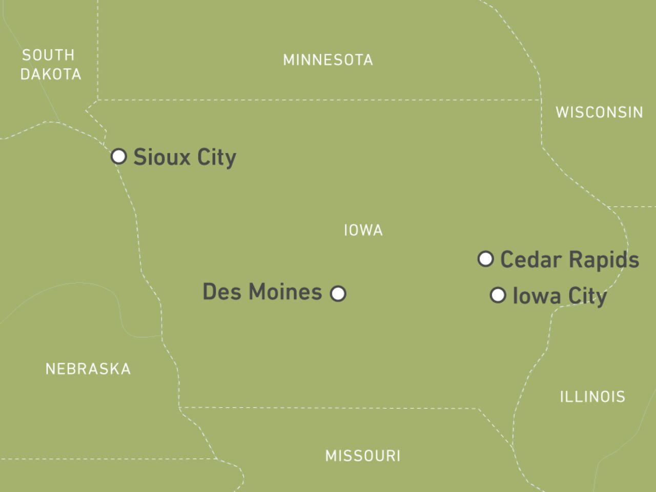 Hügelige Ebenen mit ländlichem Charme prägen Iowa, den Bundesstaat im Mittleren Westen der USA. Bekannt für seine Maisfelder, überrascht Iowa, auch Corn-State genannt, durch seine Flusslandschaften. Als einziger Bundesstaat hat Iowa mit dem Missouri River und dem legendären Mississippi zwei schiffbare Flüsse, der ursprüngliche Big Sioux River bildet im Nordosten die natürliche Grenze zu South Dakota. Neben Mais werden hier vor allem Sojabohnen und Kartoffeln angebaut, benannt nach dem Stamm der Iowa-Indianer trägt er als Hommage an Häuptling Black Hawk den Beinamen Hawkeye State (Falkenauge-Staat). Seit 1857 ist Des Moines Bundeshauptstadt.