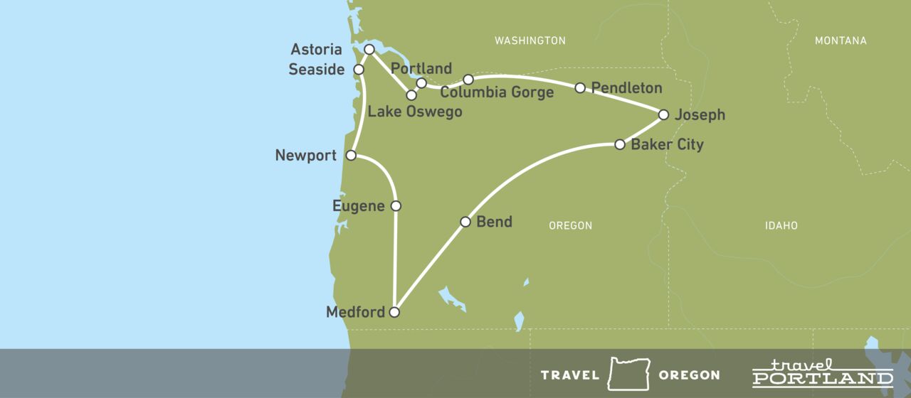 Erleben Sie auf dieser zweiwöchigen Route den Facettenreichtum von Oregon. Rund 2.300 Kilometer liegen vor Ihnen: Hippe und moderne Städte wie Portland warten ebenso auf Sie wie die schönsten Abschnitte der rauen Küste rund um Newport und Astoria sowie die spektakuläre Naturlandschaft des Bundesstaates entlang traumhafter Panoramastraßen. Oregon ist ein ganzjähriges Reiseziel. Die beste Reisezeit mit angenehmen Temperaturen und wenig Niederschlag ist aber zwischen Mai und Oktober.