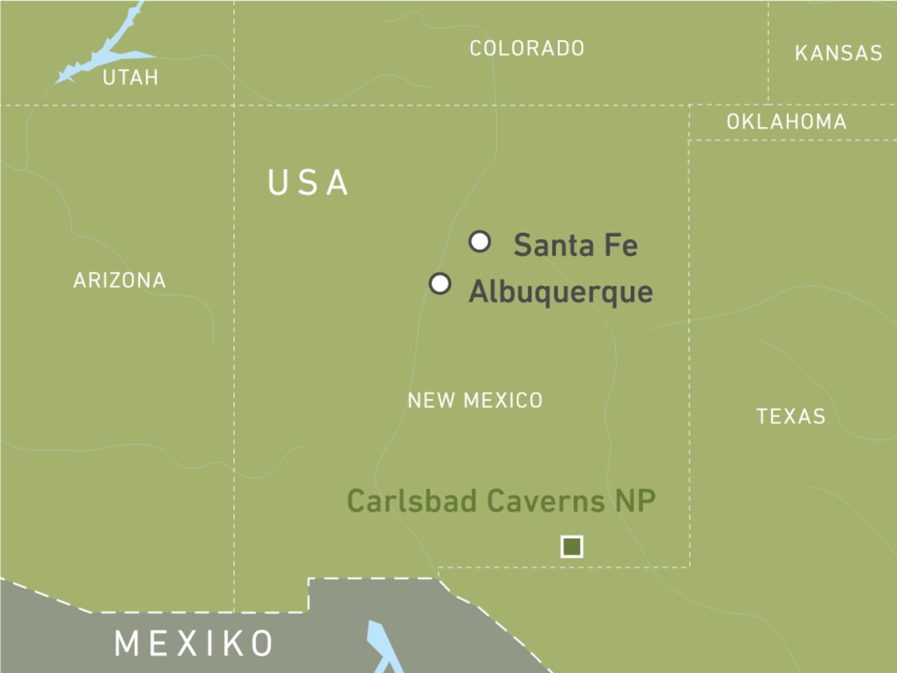 New Mexico ist der fünftgrößte Bundesstaat der USA und liegt im Südwesten des Landes an der Grenze zu Mexiko. Die Landschaft ist geprägt durch die Lage auf einem Hochplateau und einer weiten Wüstenlandschaft. Weiße Sanddünen, schroffe Felsformationen und Ausgrabungen unterschiedlicher indigener Völker und Siedler sind nur einige der Highlights auf einer New Mexico Reise.