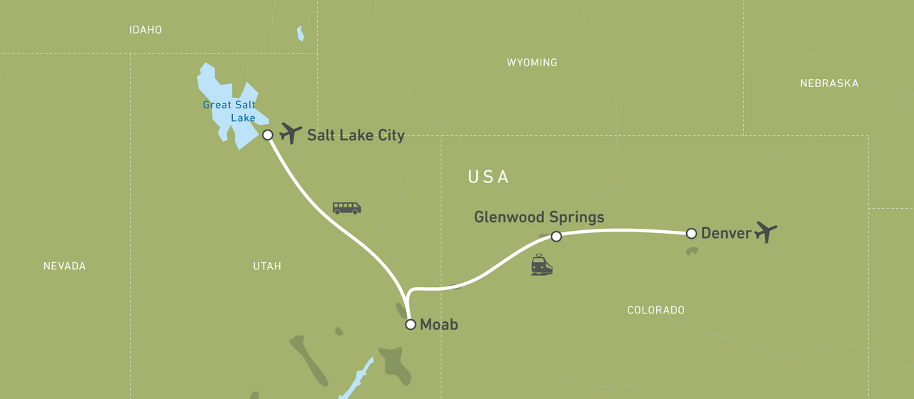 Als sich mit nun die Gelegenheit bot, auch die USA mit dem Rocky Mountaineer* zu bereisen, konnte ich einfach nicht widerstehen. Im Oktober 2025 mache ich mich also mit meiner lieben Kollegin und Reisepartnerin My Thanh Dam (Mimi) auf eine dreitägige Zugreise von Utah nach Colorado. Wir starten in Salt Lake City, fahren mit dem Bus nach Moab und von dort mit dem Canyon Spirit über Glenwood Springs bis nach Denver. Unterwegs erkunden wir zudem den Canyonlands National Park, den Arches National Park und den Rocky Mountain National Park.