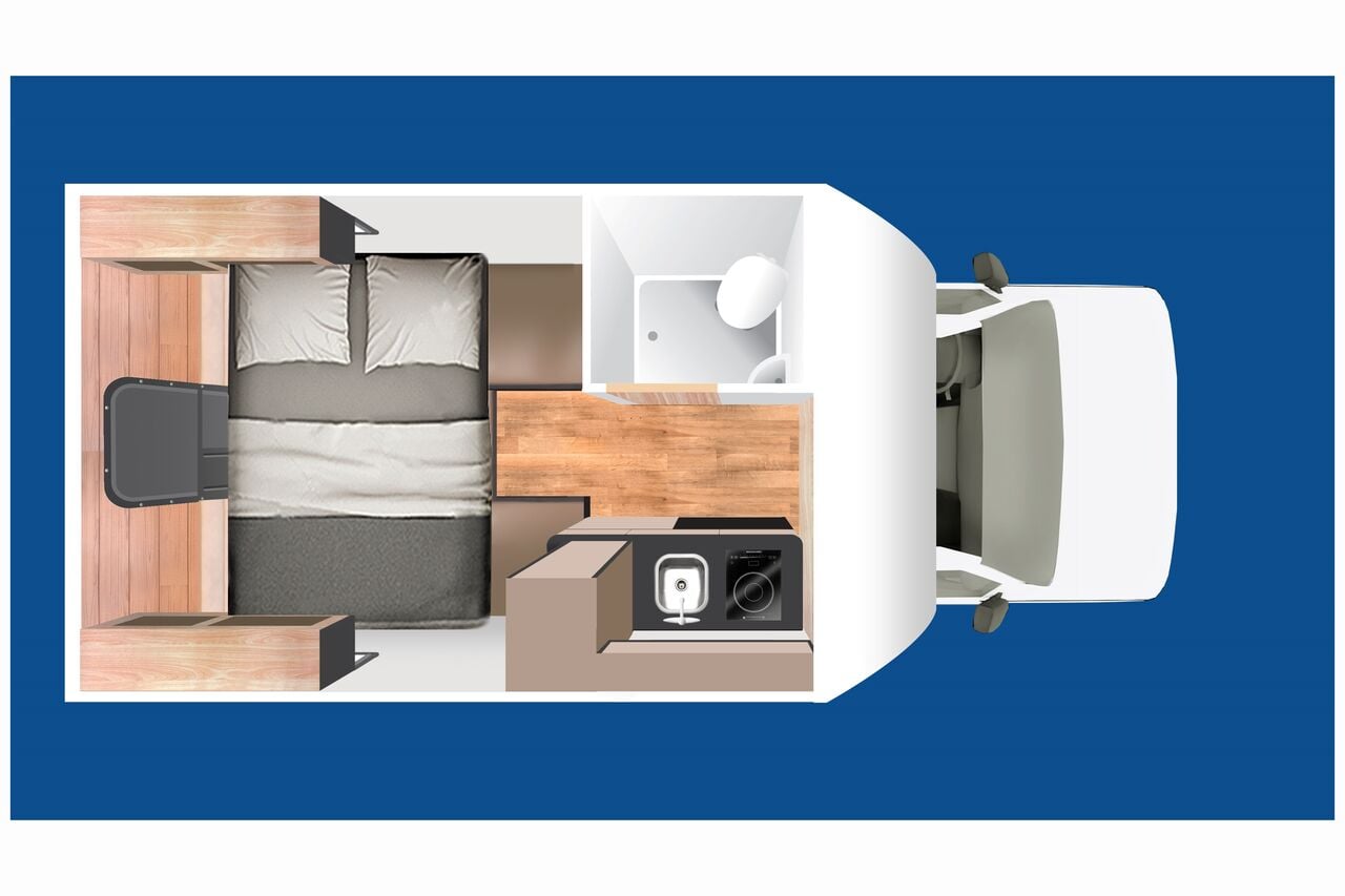 Der C18 ist das kompakteste Wohnmobil der Cruise Flotte und bietet die perfekte Balance zwischen Ausstattung und einfacher Handhabung. Es bietet Platz für 2 Personen und verfügt u.a. über ein Badezimmer mit Dusche und Toilette, sowie einer Küche mit elektrischer Kochplatte und Kühlschrank.