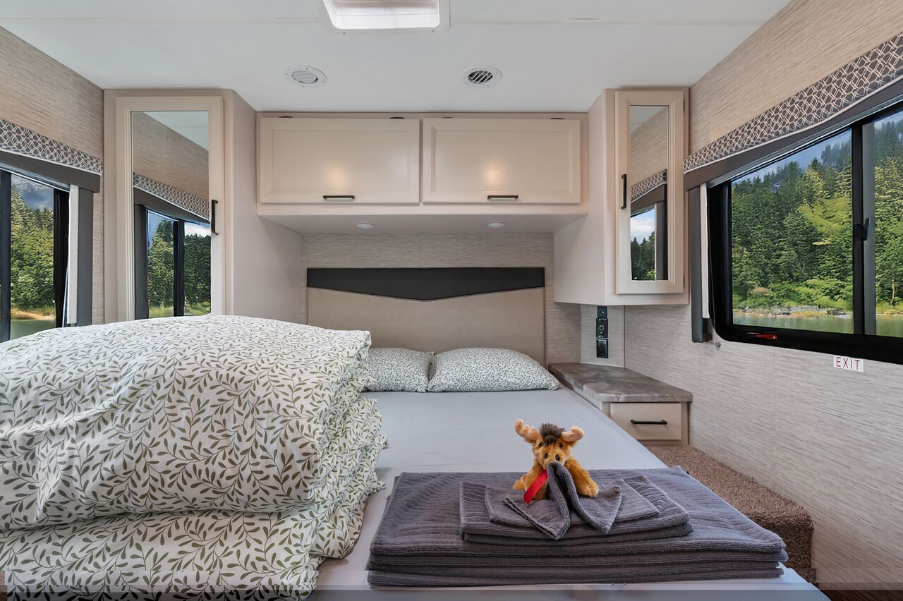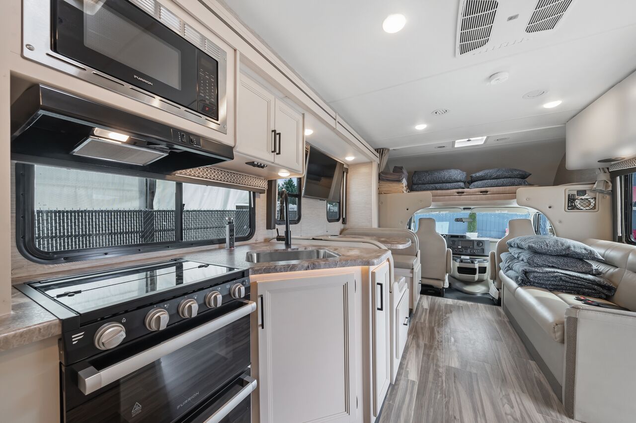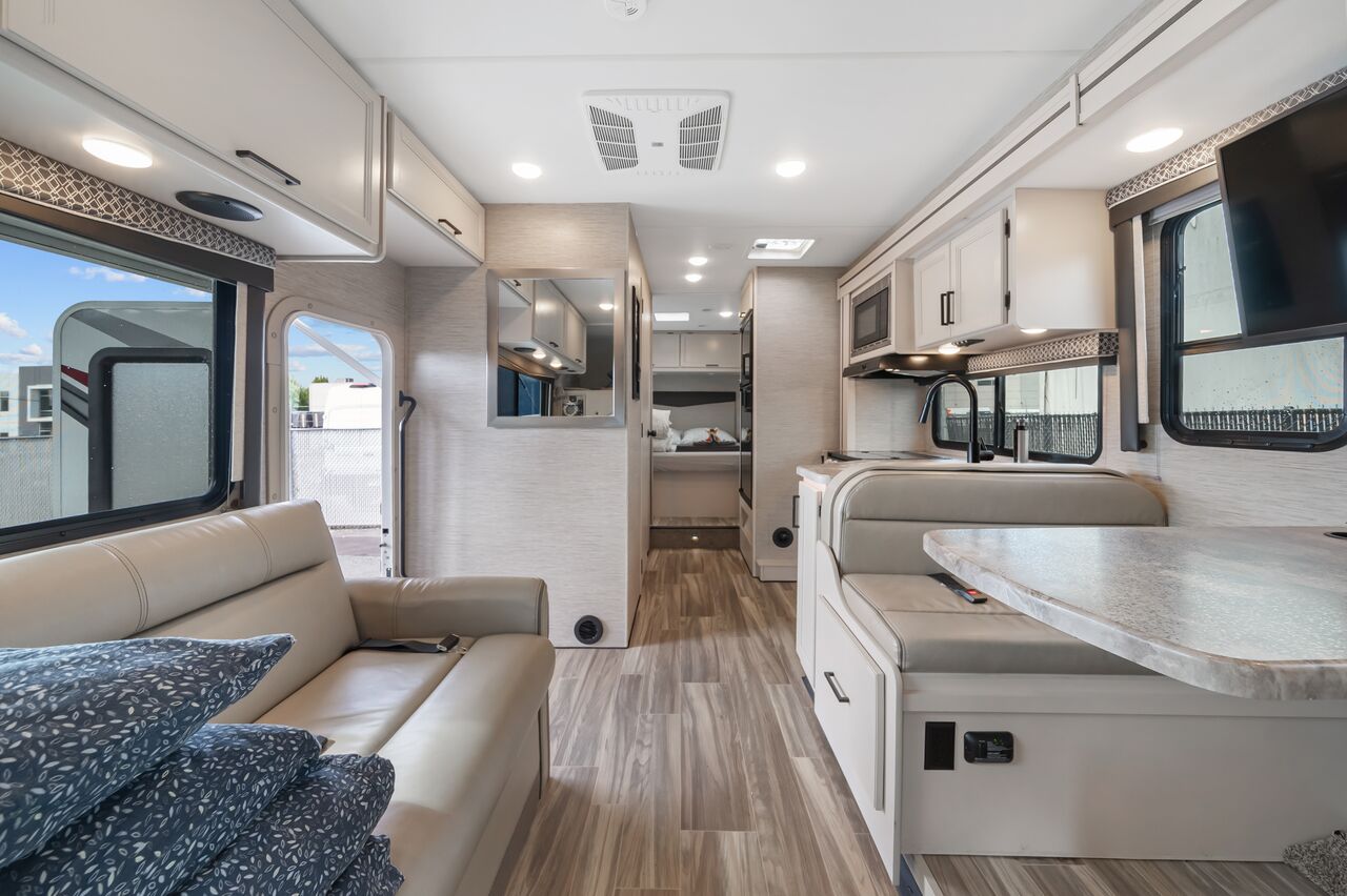 1 Slideout, 6 Sitzplätze mit Gurt, Kindersitzbefestigung, Durchgang Fahrerkabine, 12V Zigarettenanzünder, Generator, Klimaanlage in der Fahrerkabine, Klimaanlage im Wohnbereich, Heizung, Markise, Radio, TV